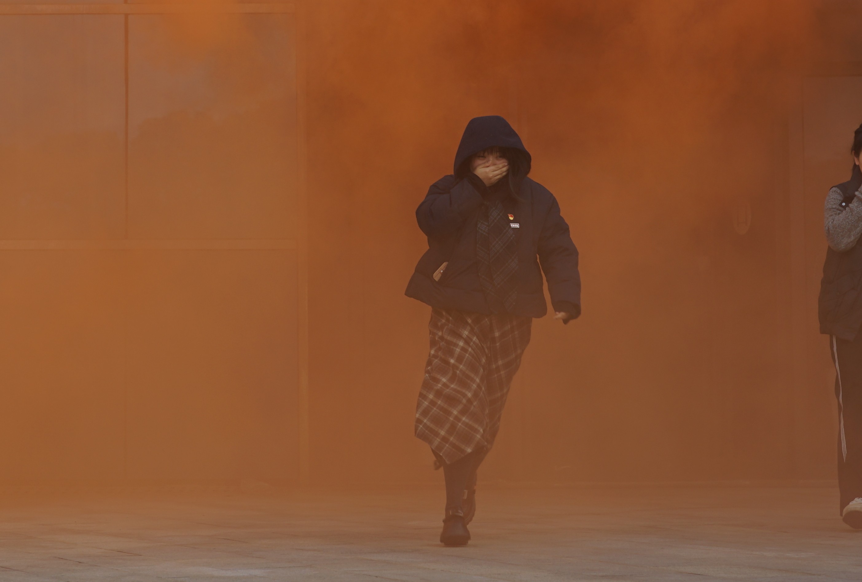 随着模拟火警警报响起,逃生演练正式启动。师生闻声立即行动,按预定路线低姿弯腰,捂住口鼻,沿墙壁快速撤离至指定安全区域。全体人员1分钟内完成疏散,各班迅速清点人数并上报,演练全程紧张有序、零失误。