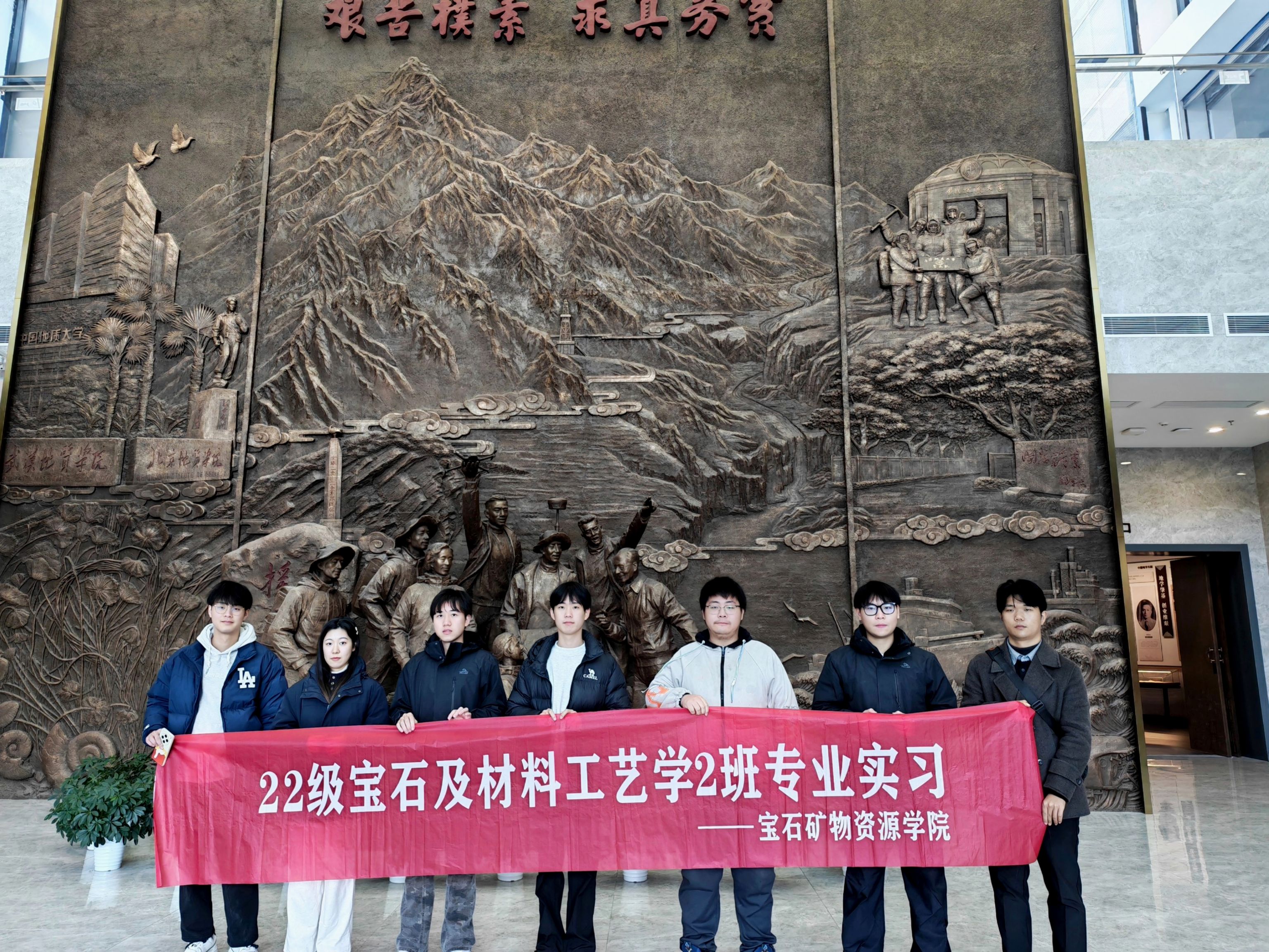 当日下午,在图书档案与文博部办公室主任梁胜男的安排下,师生参观了地大校史馆。讲解员以编年体展厅的7大篇章为脉络,从北京地质学院的建立到中国地质大学的新格局,全面梳理了学校七十年的办学发展史。一代代地质人坚守理想、深耕科研的精神,深深感染了在场每一位同学,进一步坚定了大家深耕宝石及材料工艺领域的信念。