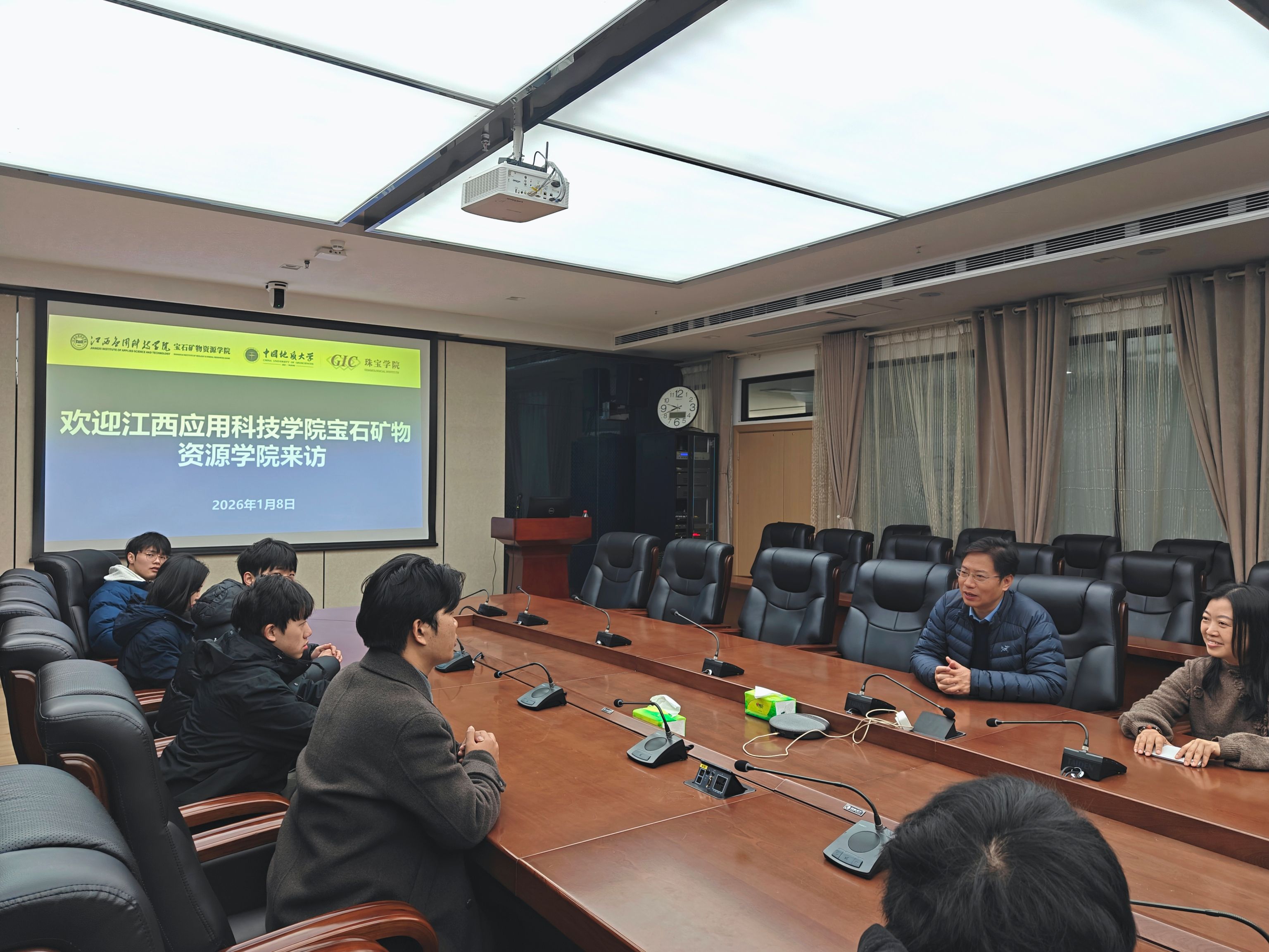 1月8日上午,我院师生抵达中国地质大学(武汉)珠宝学院,受到学院党委书记邓云涛、副院长陈涛教授的热烈欢迎。邓书记表示:“宝石及材料工艺学是兼具科学性与实践性的特色专业,我校始终致力于该领域的教学科研与行业赋能。此次同学们的到来,为两校搭建了宝贵的实践交流桥梁,希望大家能在参观学习中多看、多问、多思,充分感受珠宝专业的魅力与科研的严谨,也期待未来两校能进一步深化合作,共同为珠宝行业培养更多高素质专业人才。”