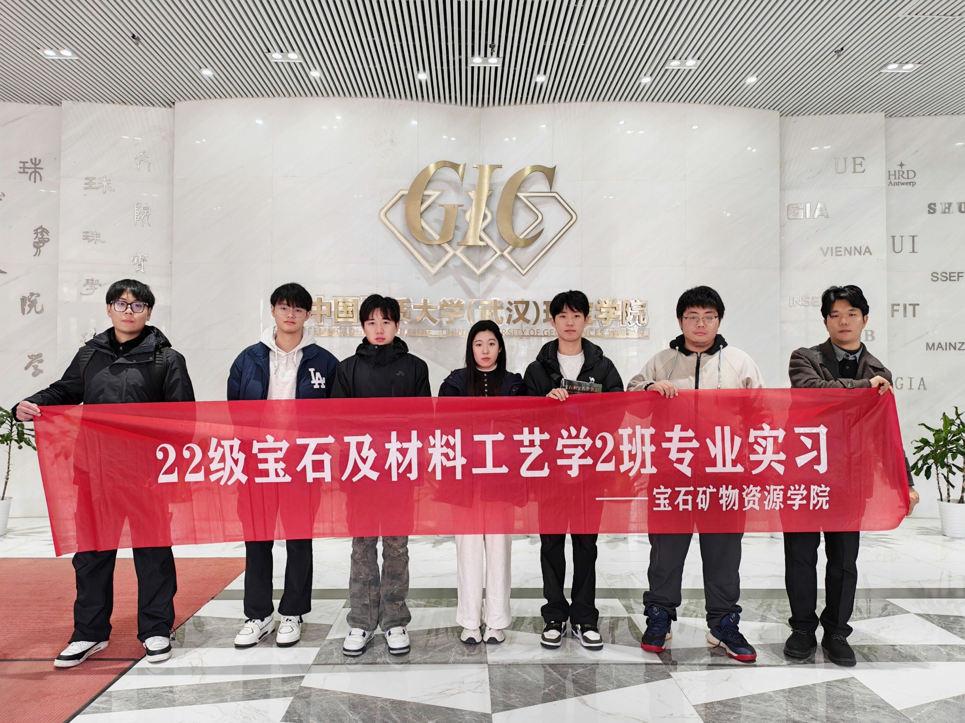 继黄石实地实习之后,2026年1月8日至9日,宝石矿物资源学院22级宝石及材料工艺学专业(专升本)6名学生在指导教师高冉的带领下,赴中国地质大学(武汉)、武汉宝谷珠宝交易中心开展后续实习活动。此次实习聚焦珠宝质检技术、高校科研资源及市场运营逻辑,为同学们搭建了高校研学、市场实践的多元学习平台。