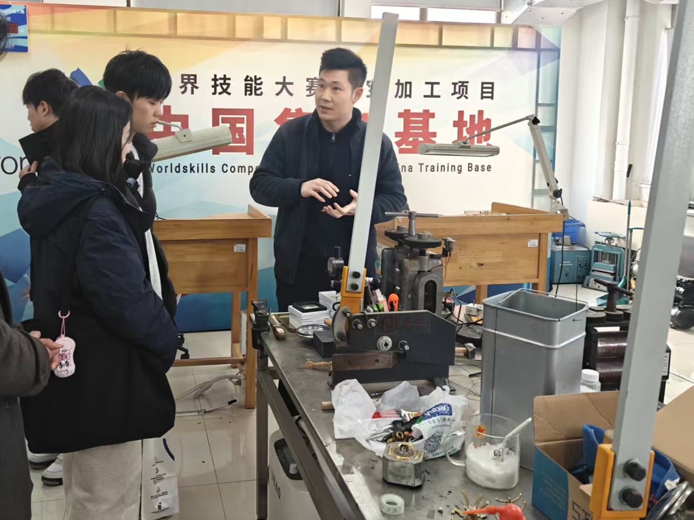 座谈会后,陈涛副院长带领师生先后参观了学院5楼的珠宝检测中心(GIC)和珠宝先进检测实验中心。检测中心负责人何翀详细介绍了珠宝质检全流程及常用仪器设备,陈涛副院长则亲自为同学们讲解了Micro-FTIR、UV-Vis-NIR、LA-ICP-MS和SEM等大型精密仪器的科研应用范围及功能。随后,师生还参观了11楼首饰加工实验室、10楼首饰加工工作室及6楼职业教育中心,近距离感受珠宝设计与加工的实践氛围。期间,珠宝学院副院长陈全莉教授与同学们举行茶话会,针对毕业实习、论文撰写及就业方向等问题逐一解答,为同学们的职业发展提供了宝贵指导。