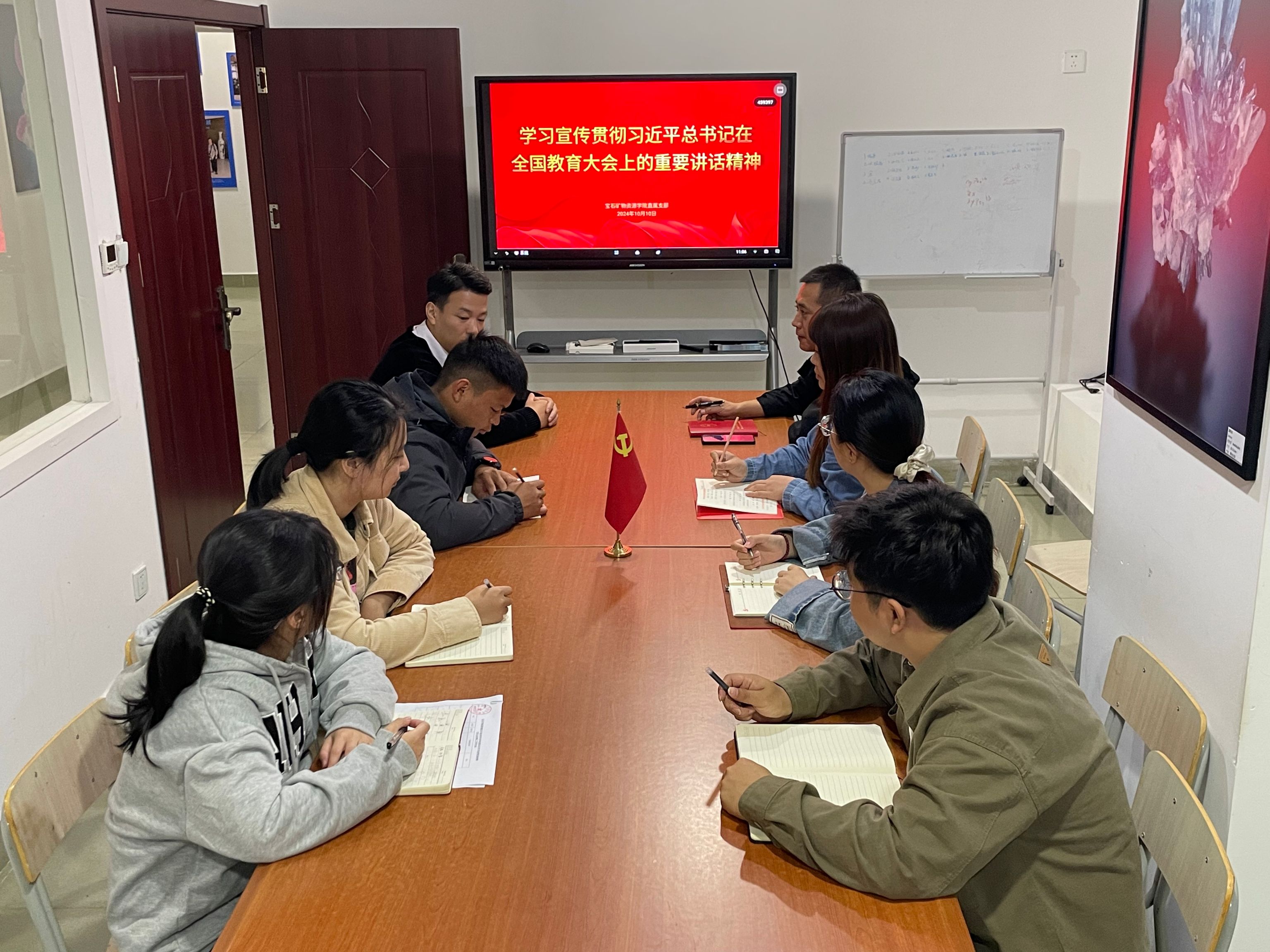 10月10日,宝石矿物资源学院直属党支部在学院会议室召开《学习宣传贯彻习近平总书记在全国教育大会上的重要讲话精神》理论学习会议。