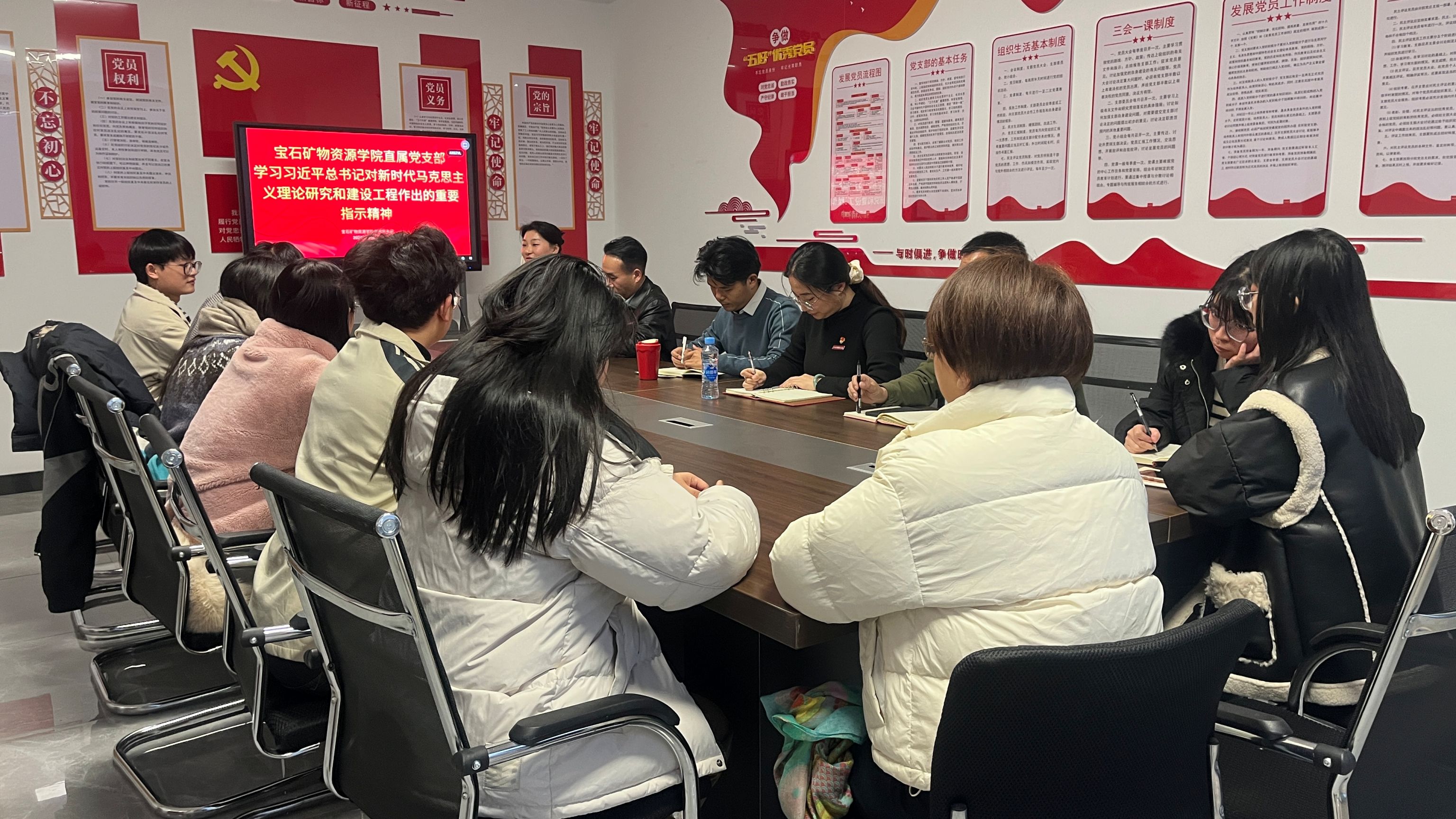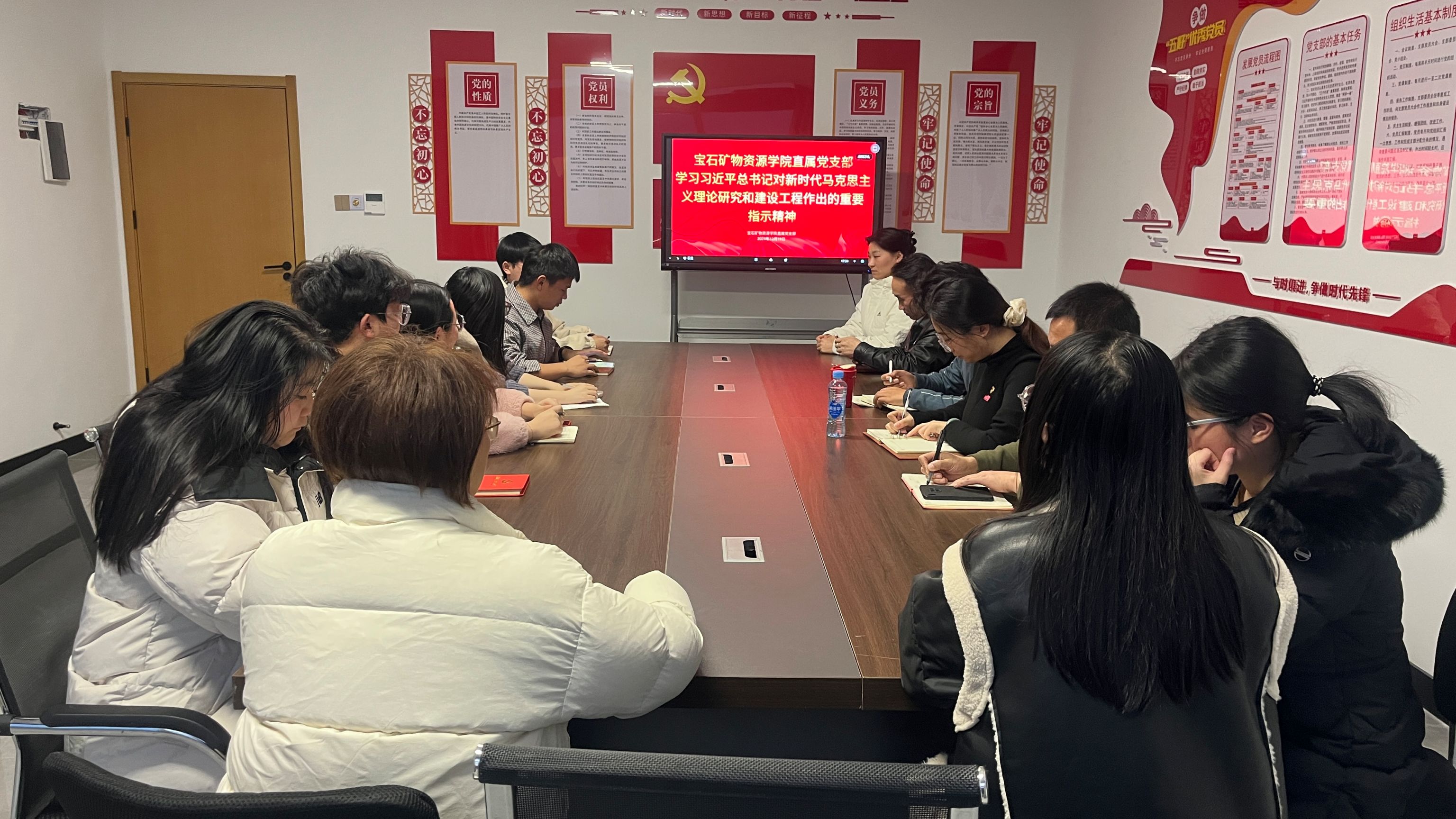 12月19日,宝石矿物资源学院直属党支部在三元大厦学院8楼党员活动室开展研讨学习习近平总书记对新时代马克思主义理论研究和建设工程作出的重要指示精神的会议,会议由何平主持召开,直属党支部全体党员参加。