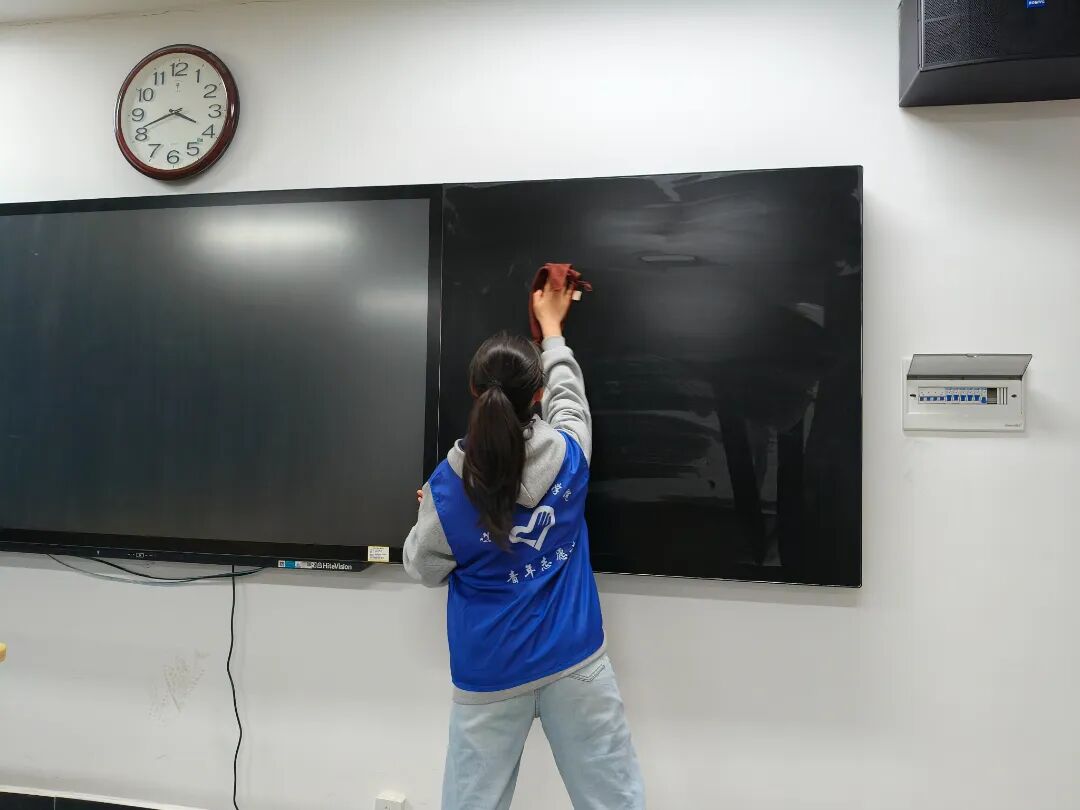 活动当天,志愿者们准时集合,分组展开清洁。一组专注门窗擦拭,从上到下仔细清理窗框、玻璃及缝隙灰尘;另一组专攻公共区域,彻底清扫杂物,细致擦拭桌椅,再用拖把将地面拖洗干净。分工协作中,大家以认真的态度投入劳动,用汗水体会奉献的价值。