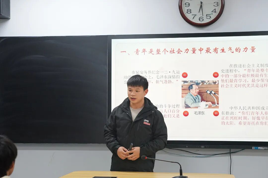 黄彩礼老师指出,“青年何谓”是信仰之问,“青年何为”是行动之答。新时代青年要以青春之我、奋斗之我,立大志、明大德、成大才、担大任,在学习中增长本领,在实践中锤炼作风,在服务同学、奉献学院、报效祖国的过程中绽放青春光彩。
