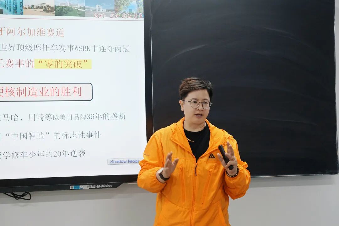 团课伊始,张荆书记以张雪机车在世界顶级摩托车赛事WSBK中强势夺冠这一热点事件为切入点,带领大家共同回顾了这一振奋人心的时刻,2026年3月29日,在葡萄牙阿尔加维赛道上,成立仅两年的中国品牌张雪机车连夺两冠,一举打破了欧美日品牌长达36年的垄断,实现了中国制造在世界顶级摩托赛事上零的突破,这不仅是一场赛场胜利,更是中国智造凭借硬核实力赢得世界认可的标志性事件。