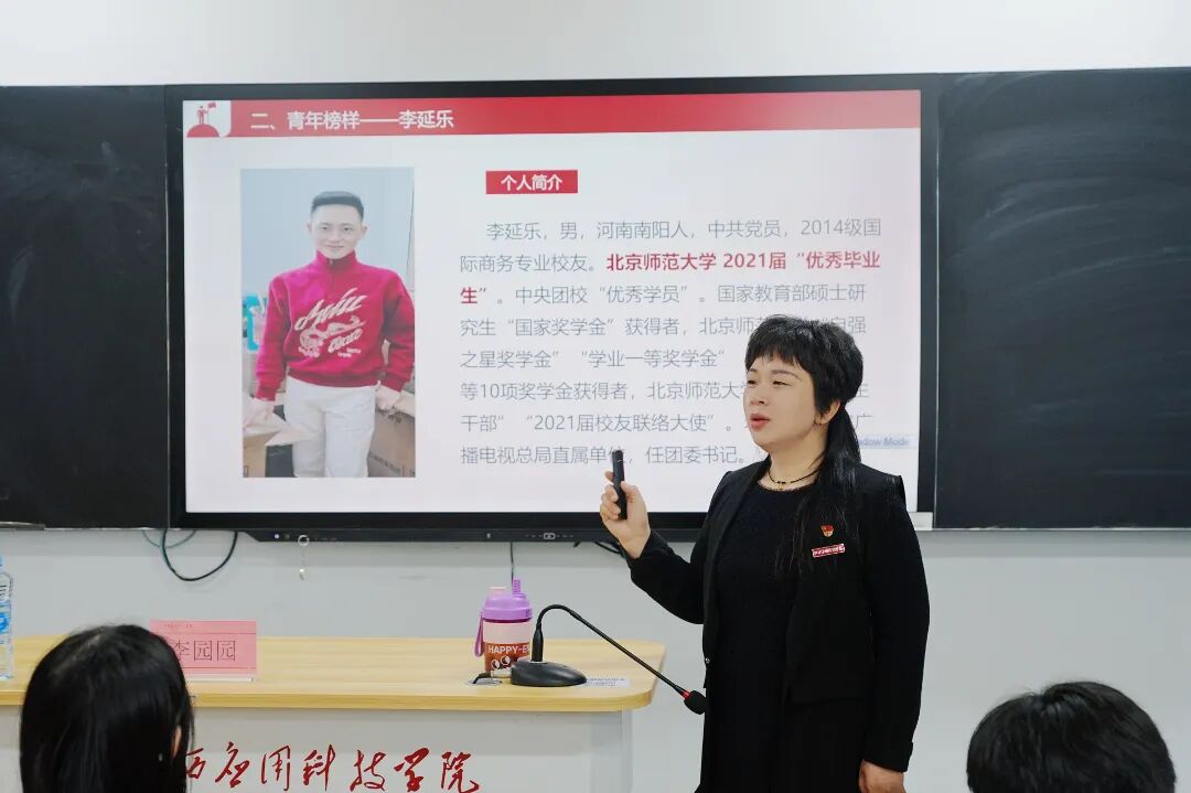 李园园以共青团百年发展历程为脉络,带学员重温青年团员奋斗故事,从青年团成立时的救亡图存,到抗战时的浴血奋战,从“两弹一星”青年的奉献,到改革开放青年的敢闯敢试,让学员读懂责任是共青团底色与青年精神基因。结合新时代青年特点,她用案例阐释担当内涵,如勤学笃行、志愿服务热忱、勇毅前行,鼓励学员拒绝“躺平”与浮躁,将所学转化为服务社会的能力。她分享了母永奇等优秀校友与青年榜样事迹,为学员树立身边榜样,让大家感受青年担当模样。