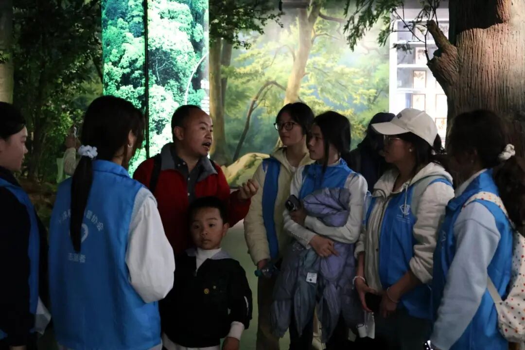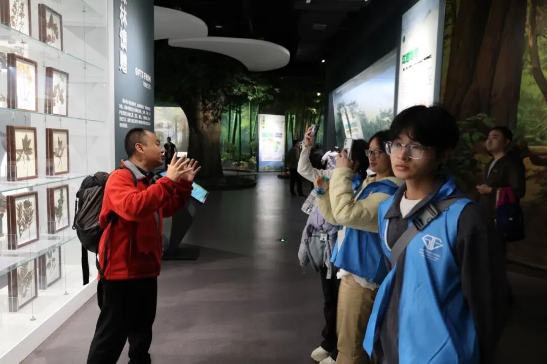 志愿者在林科院博物馆开启科普参观之旅,了解林业科学知识,深化对地球科学与生态保护的认知。