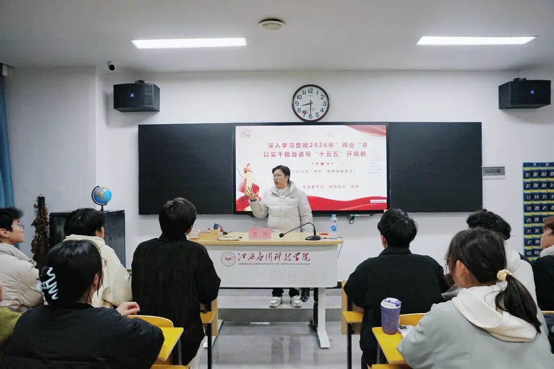 整场授课氛围轻松热烈,内容贴近青年、贴近实际。学员们认真聆听、积极思考,纷纷表示受益匪浅。此次学习不仅加深了对两会精神的理解,更明确了青年骨干的努力方向。、