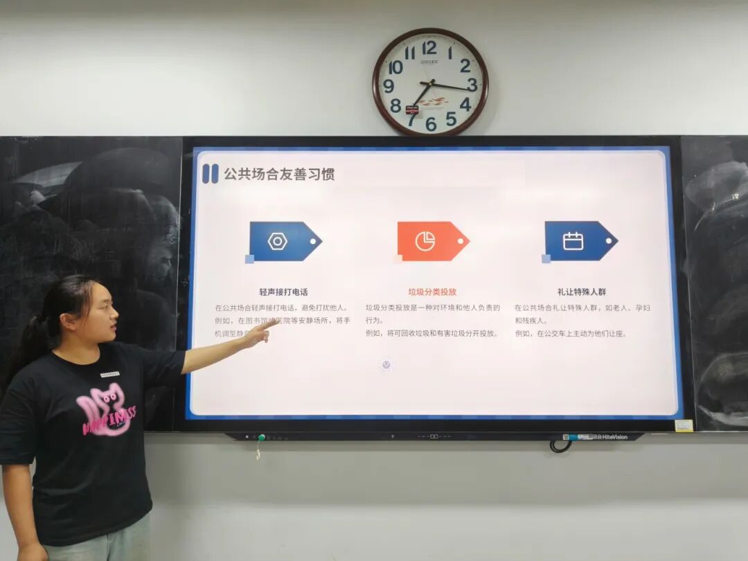 许可同学聚焦校园生活场景,分享了“三向友善”实践:对老师以主动请教、配合教学彰显尊师之道;对学姐学长以虚心学习、协作活动传承朋辈温情;对宿舍同学以包容互助、共建整洁环境筑牢集体纽带,让大家深刻感受到尊重在日常相处中的力量。
