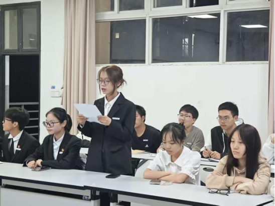 首先,商学院商务英语1班的班级负责人李宇菲同学进行发言,她结合本班实际,分享了在组织“绘青春风采,诵家国华章”海报活动及推动“好习惯标兵”评选等工作中的经验与感悟。她提到班级的同学们在好习惯养成中互帮互助,取得了显著成效。随后,宝石矿物资源学院宝石及材料工艺学1班的负责人秦雯钰同学重点介绍了如何利用好课余的碎片化时间,通过分享红色故事、观看爱国影片、讨论国家科技成就等方式,将家国情怀自然融入日常学习生活,同时也坦诚指出了目前存在的参与度不均等问题。