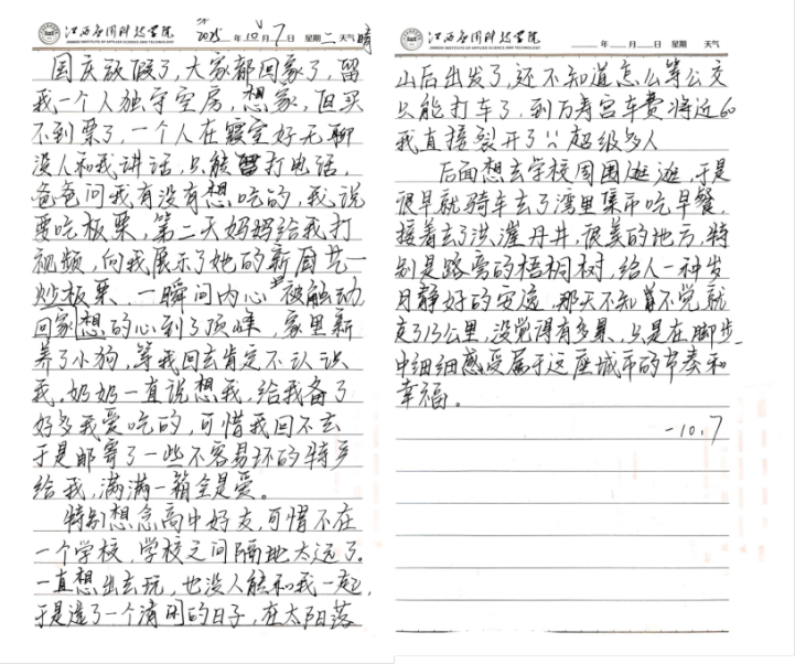 此次优秀周记展示,让我们真切领略到文字的强大力量。有的同学在周记里写下第一次使用宝玉石鉴定仪器观察宝石时的惊叹,那新奇又兴奋的感受透过纸页扑面而来;有的同学则追忆起高中时光,字里行间满是对家人的想念,同时倾诉着刚步入大学时,面对新环境、新生活的愁绪与迷茫;还有同学分享着对大学生活和课堂的探索,从初次接触大学课程的紧张,到逐渐融入学习节奏的欣喜。这些周记没有堆砌华丽的辞藻,却以最质朴的语言,将真实的情感与经历娓娓道来,让读者仿若身临其境。它们如同一面面镜子,清晰映照出同学们在大学生活中的蜕变与进步。相信这些优秀周记会激励更多同学用心书写,在第二课堂收获更多成长与精彩。