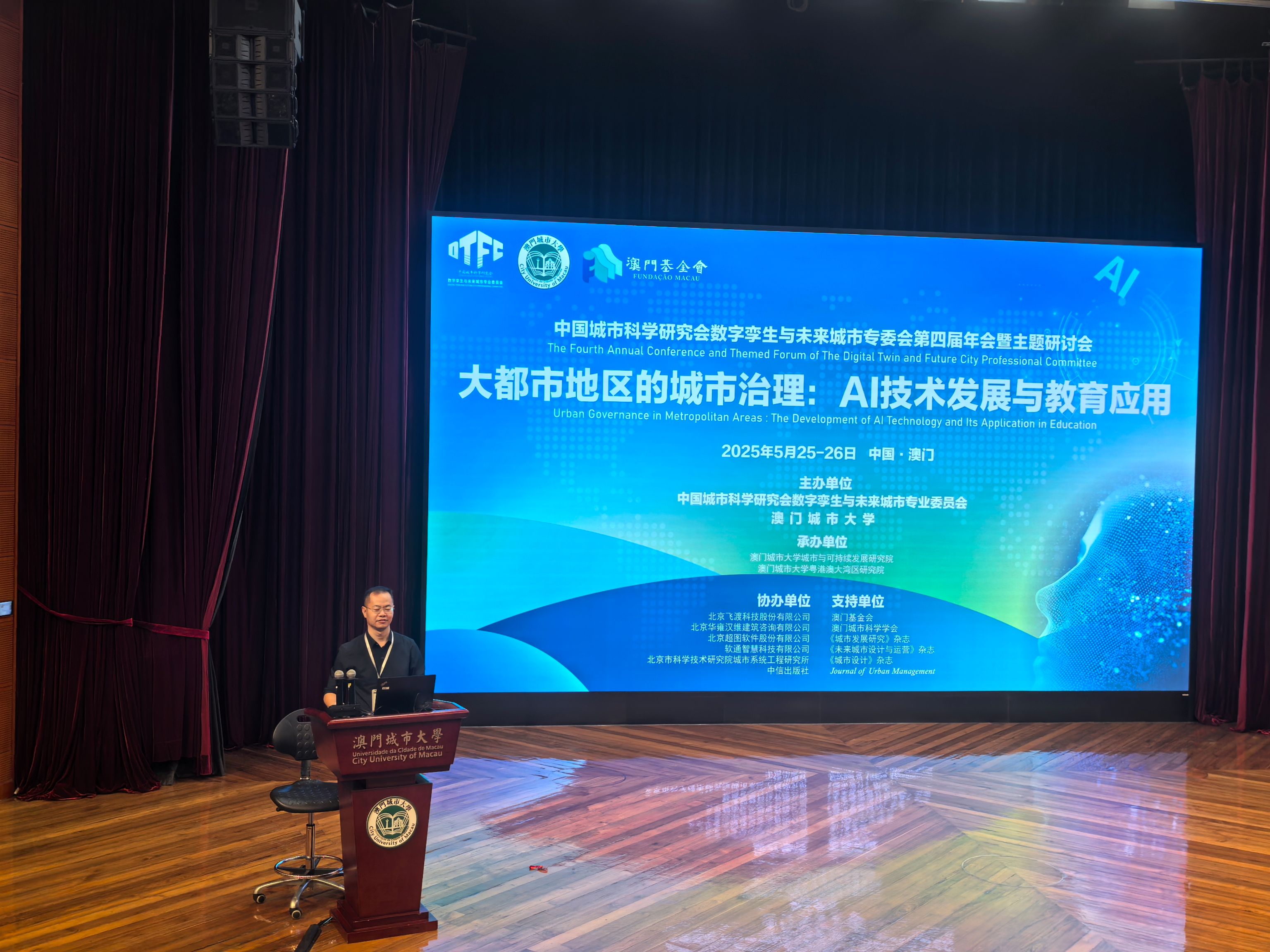 2025年5月25日,由中国城市科学研究会数字孪生与未来城市专委会、澳门城市大学联合主办的第四届年会在澳门成功召开。本次会议吸引了来自国内十多个城市及英国、新加坡等国家的100余位专家学者、行业精英现场参会,超2000人通过线上直播平台观看。参会代表覆盖城市科学、城乡规划、大数据、元宇宙等多元领域,围绕AI技术在城市治理、教育领域的创新应用展开深度探讨。建筑学院院长赵新胜作为行业内的资深专家,受邀出席了此次盛会,并在会上发表了重要讲话。