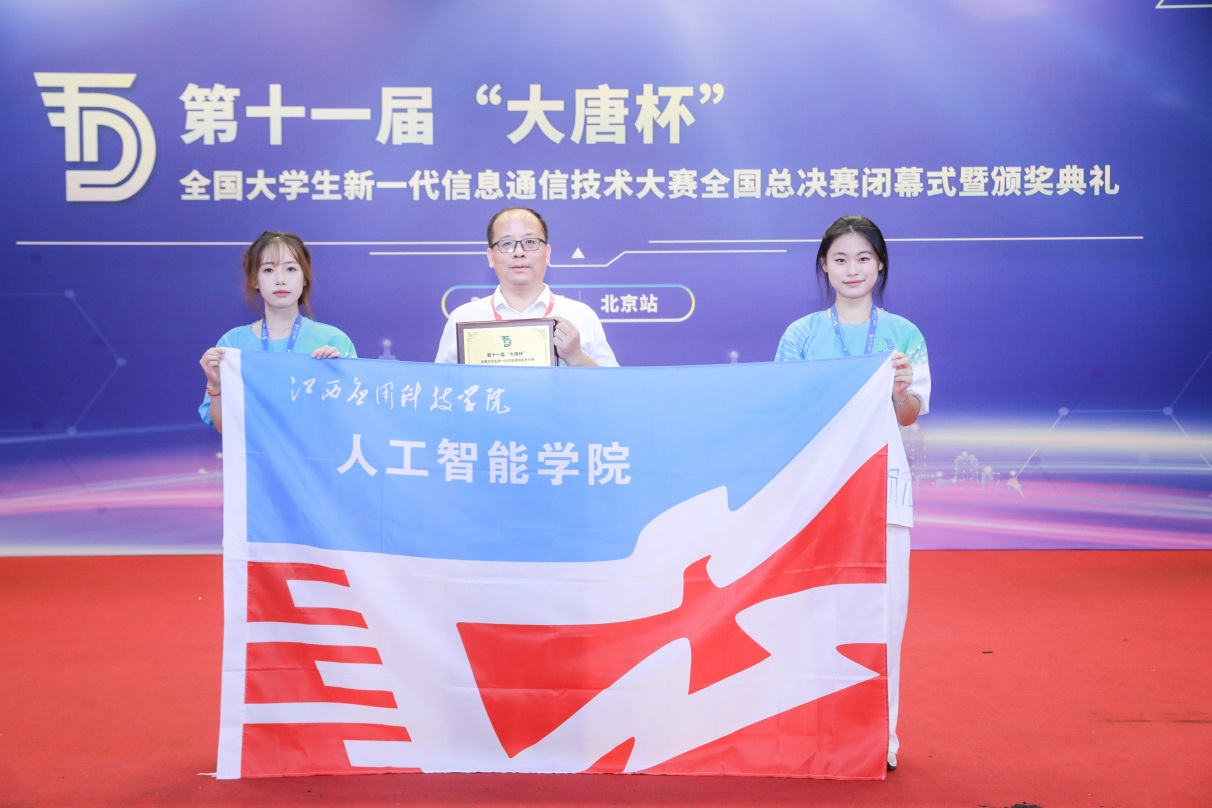 大唐杯全国大学生新一代信息通信技术大赛是教育部高等教育学会“全国普通高校大学生竞赛分析报告竞赛目录”排名第41位专业A类竞赛。人工智能学院领导班子对此项竞赛高度重视,周密部署,组织精干力量进行竞赛宣讲、竞赛小组选拔、组织报名和线上+线下双结合的培训、练习。经江西省赛区选拔后再次进行专项训练,同学们认真扎实的完成培训并通过了全国总决赛预选赛,于7月11-14日、7月21-24日分别参加了武汉的高职组、北京的本科B组全国总决赛,教师7月12-14日参加了在武汉理工大学举行的全国双师型教师新一代信息通信技术大赛,经过激烈角逐终获喜人成绩。