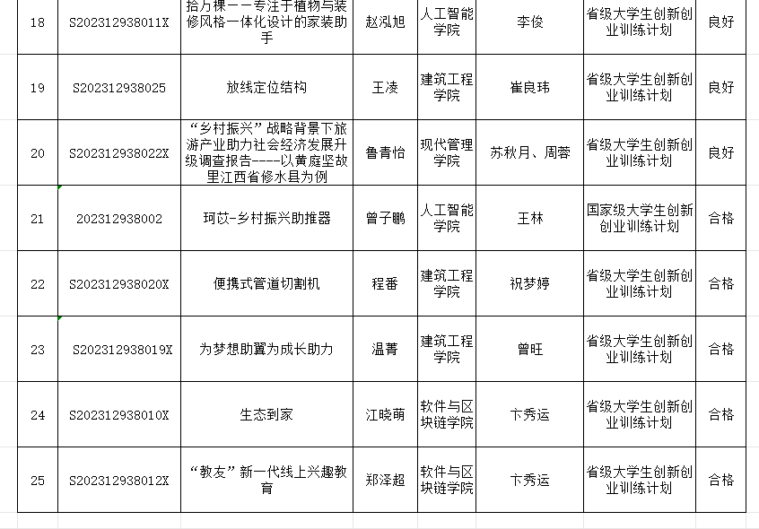本次答辩共有25支队伍参加,最终评选出8个优秀项目,12个良好项目,5个合格项目。现将结果公示如下: