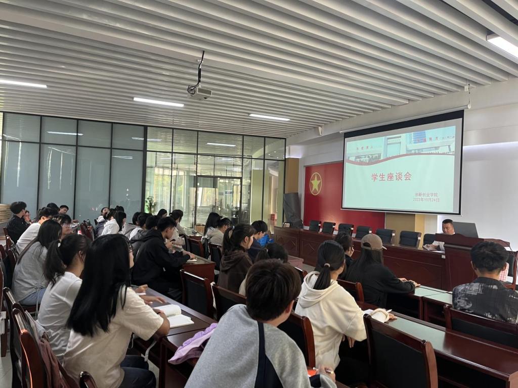 根据学校教学工作安排,关于开展2023-2024学年第一学期期中教学检查通知(2023年175号)精神。我院10月24日下午组织召开师生座谈会。教师座谈会在学院213会议室召开,由院长张荆主持会议;学生座谈会在产教融合中心一楼119室(青年创业论坛)召开,由教务科科长宋晓卫主持会议。