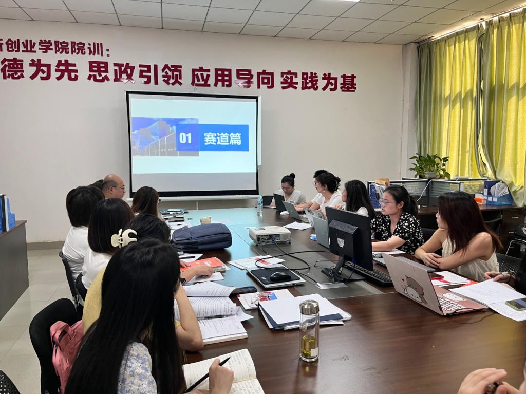 三位老师外出学习归来后,于9月26日下午在创新创业学院产教融合中心213举办了三创赛骨干师资能力提升研讨交流分享会。创新创业学院院长张荆、各教研室主任及全体专任教师参与会议,会议由创新创业学院副院长何梦杨主持。