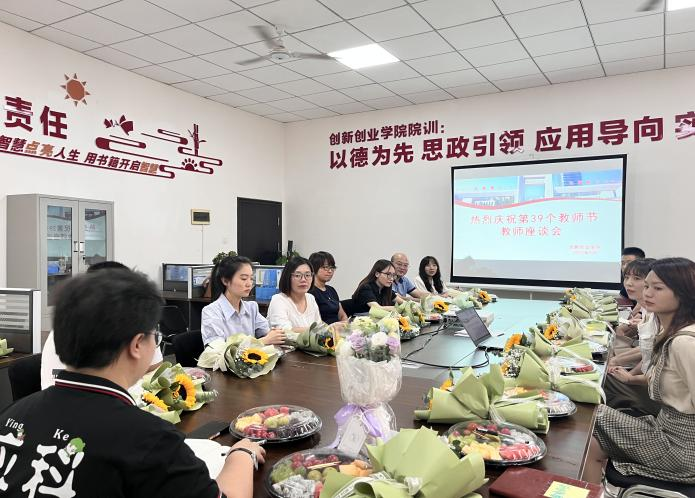 在第39个教师节即将到来之际,9月5日下午,创新创业学院举行庆祝第39个教师节教师座谈会,向广大教师和教育工作者致以节日问候和美好祝福。学院院长张荆、副院长何梦杨出席会议,代表学院领导班子向全院广大教师和教育工作者致以节日祝贺和诚挚问候,学院全体教师和行政科室参加座谈会。