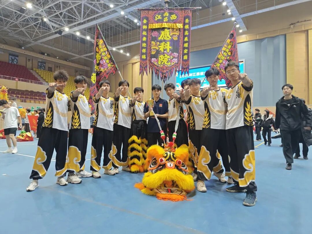 由江西省教育厅主办,江西省学生体育协会,上犹县教育体育局承办的2025年江西省大、中学生舞龙舞狮比赛在上犹县文体中心落下帷幕。我校荣获彩带龙自选 7 人(本科甲组)第二名、彩带龙3人组(本科乙组)第二名;竞速舞龙(本科甲组)第三名、南狮传统套路(本科乙组)第三名;彩带龙自选 5 人(专科乙组)第二名、彩带龙自选 3 人(专科乙组)第二名;北狮传统套路(专科乙组)第三名;彩带龙自选5人(专科甲组)第三名;团体总分获本科甲组第三名、本科乙组第四名及专科乙组第四名。