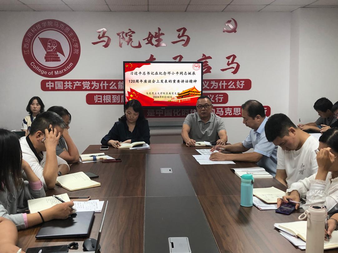 9月10日,马克思主义学院直属党支部围绕习近平总书记在纪念邓小平同志诞辰120周年座谈会上发表的重要讲话精神开展理论学习。