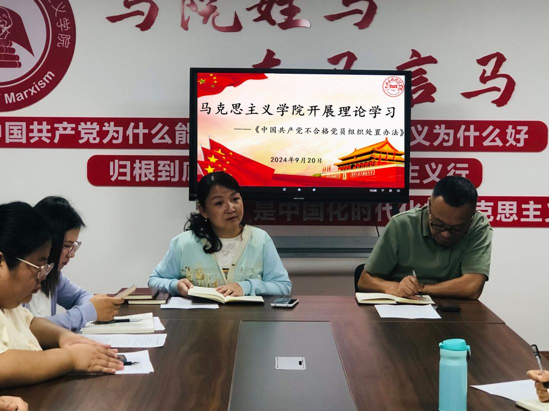 为深入学习贯彻习近平总书记重要讲话和重要指示批示精神。9月20日,马克思主义学院组织召开会议集中学习《中国共产党不合格党员组织处置办法》。