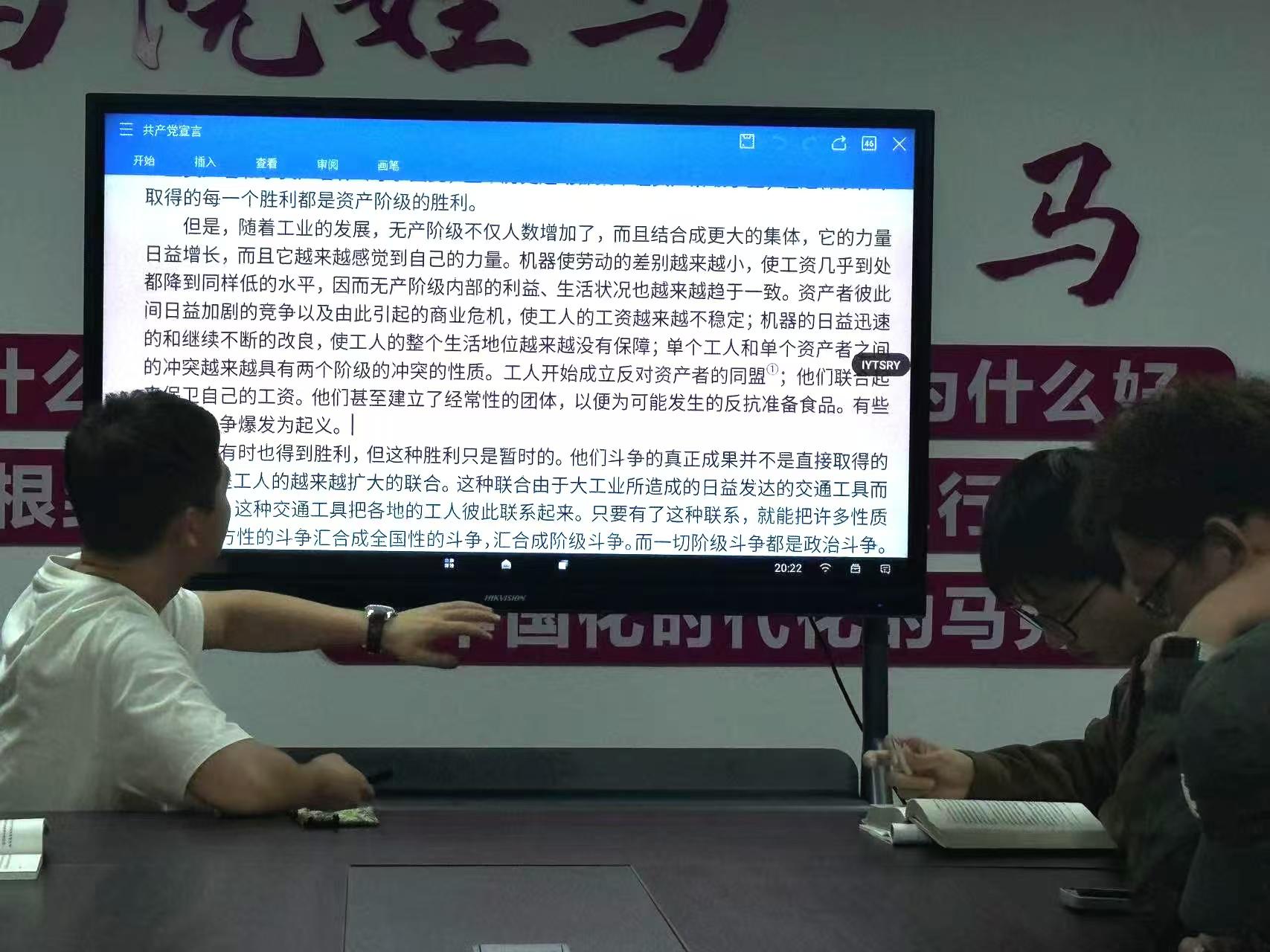 活动伊始,海小云老师先是给同学们补充了一些与此相关的背景知识以及基础性的理论知识。正式读书期间,成员们积极交流阅读疑问与感悟,现场气氛热烈。此次读书会聚焦《共产党宣言》里“无产者和共产党人”这一部分,马克思深刻阐明了共产党人同全体无产者的关系;阐明了共产党人与其他政党的关系以及共产党人的利益诉求等问题。