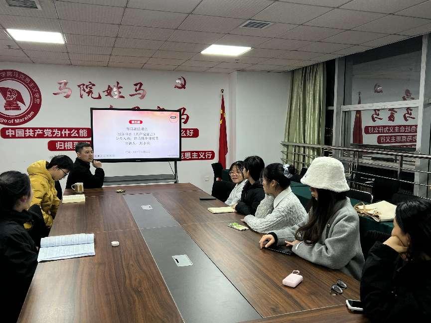 为深入理解马克思主义,进一步提升理论素养和思想觉悟,2024年11月26日19:00—21:00,江西应用科技学院青马读书社在综合楼807会议室成功举办了以学习“《共产党宣言》”为主题的第五期读书会。此次读书活动由马克思主义学院的海小云老师担任主讲人,青马读书社成员积极参与,共同探索马克思主义理论的深邃内涵。