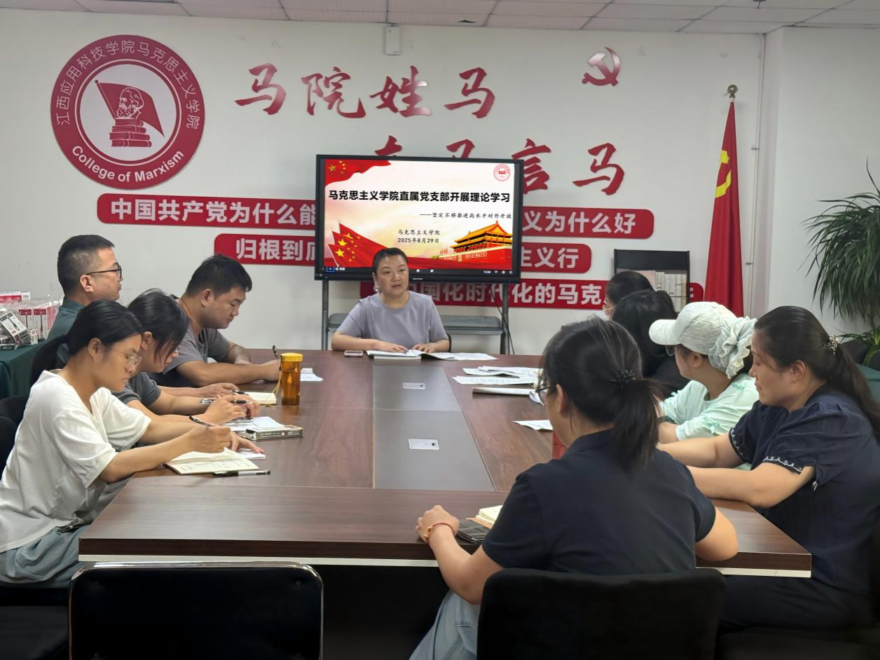 8月29日,马克思主义学院直属党支部在综合楼807围绕坚定不移推进高水平对外开放展开学习,会议由马克思主义学院直属党支部书记于冰雁主持,马院全体教师参加。