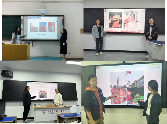 同学们结合课程内容,自行选择有关红色经典、英雄事迹、建国经历等相关的红色爱国题材故事,以及在国庆期间与国旗合影等方式,用影像的力量围绕红色历史、革命故事、新时代发展等方面进行创作,以“师生同台”的形式在课堂上进行展现,弘扬红色精神,充分展现了青年一代在实现中国梦的伟大征程中的奋斗姿态。