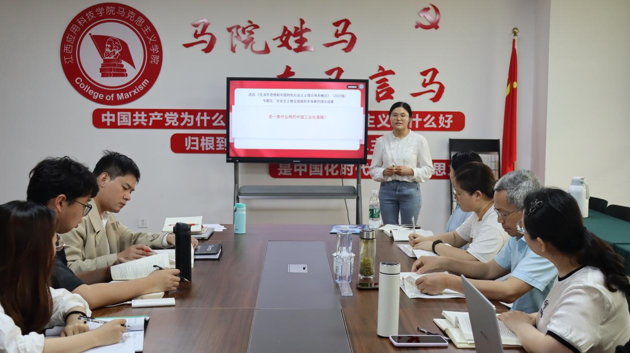 会议第一阶段,教研室主任付云娇以第四章“社会主义建设道路初步探索的理论成果”为切入点,以“走一条什么样的工业化道路”为题展开教学示范。课程以中国汽车产业从“技术引进”到“自主创新”的历程为案例,生动诠释了我国工业化道路如何突破“结构关”与“方向关”。