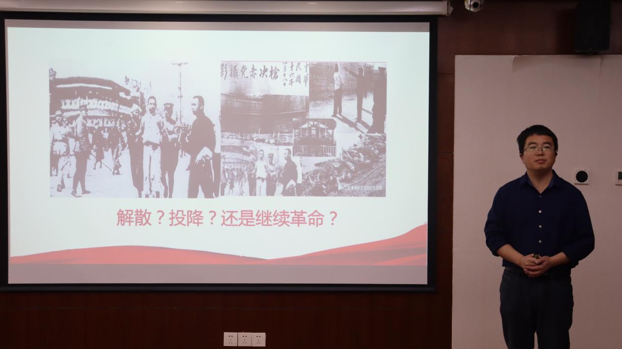 会议首先由江志斌老师进行课程教学比赛内容展示。江老师就“红土圣地:江西红色文化的生成演进”内容进行了生动的教学示范。该教师从江西丰富的红色历史资源出发,并尝试探索将厚重的红色记忆转化为生动课堂内容。