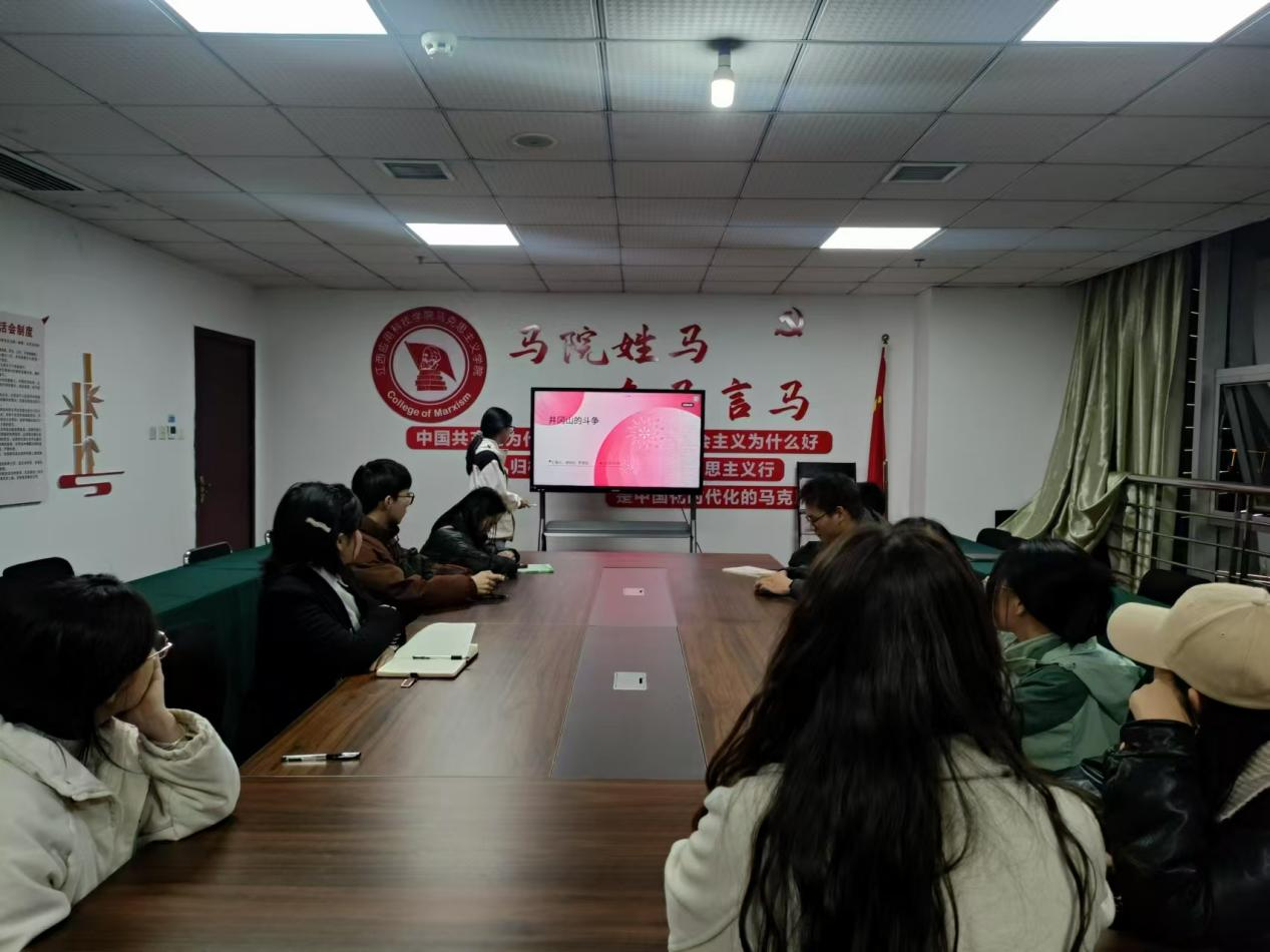本期读书会由青马读书社成员胡诗仪、罗雅宣担任主讲人,分享她们对《毛泽东选集》中《井冈山的斗争》一文的学习成果与感悟。两位同学围绕湘赣边界的割据与八月失败、割据地区的现势、井冈山斗争的理论意义、实践结果以及历史启示等五个核心方面,进行了条理清晰、内容充实的课堂展示,生动展现了经典著作的思想魅力。