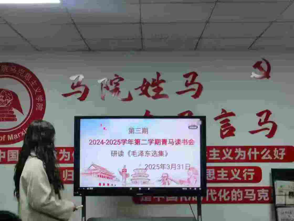 为深刻领悟马克思主义基本原理,持续提升青年学生的理论素养与思想觉悟,江西应用科技学院青马读书社于2025年3月31日19:00-21:00在综合楼807会议室成功举办本学期第三期读书分享会。本次活动以深入学习《毛泽东选集》为主题,特邀马克思主义学院海小云老师进行点评指导,青马读书社全体成员积极参与。