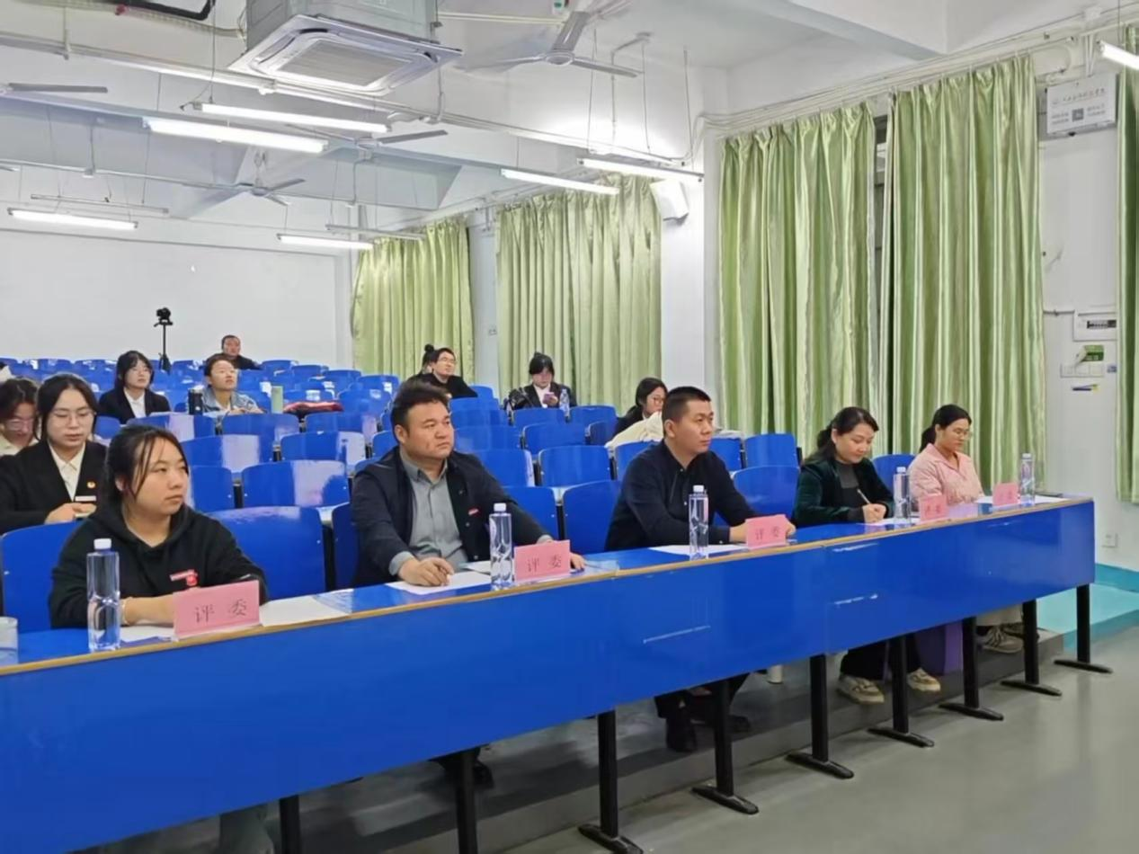 本次决赛评委特邀教务处副处长许永飞、团委副书记赵贺贺、学工处副科长黄幽,以及马克思主义学院院长于冰雁、毛泽东思想和中国特色社会主义理论体系概论教研室主任付云娇共同组成评审组,从教学内容、教学方法、语言表达、现场感染力等多个维度进行综合评分。