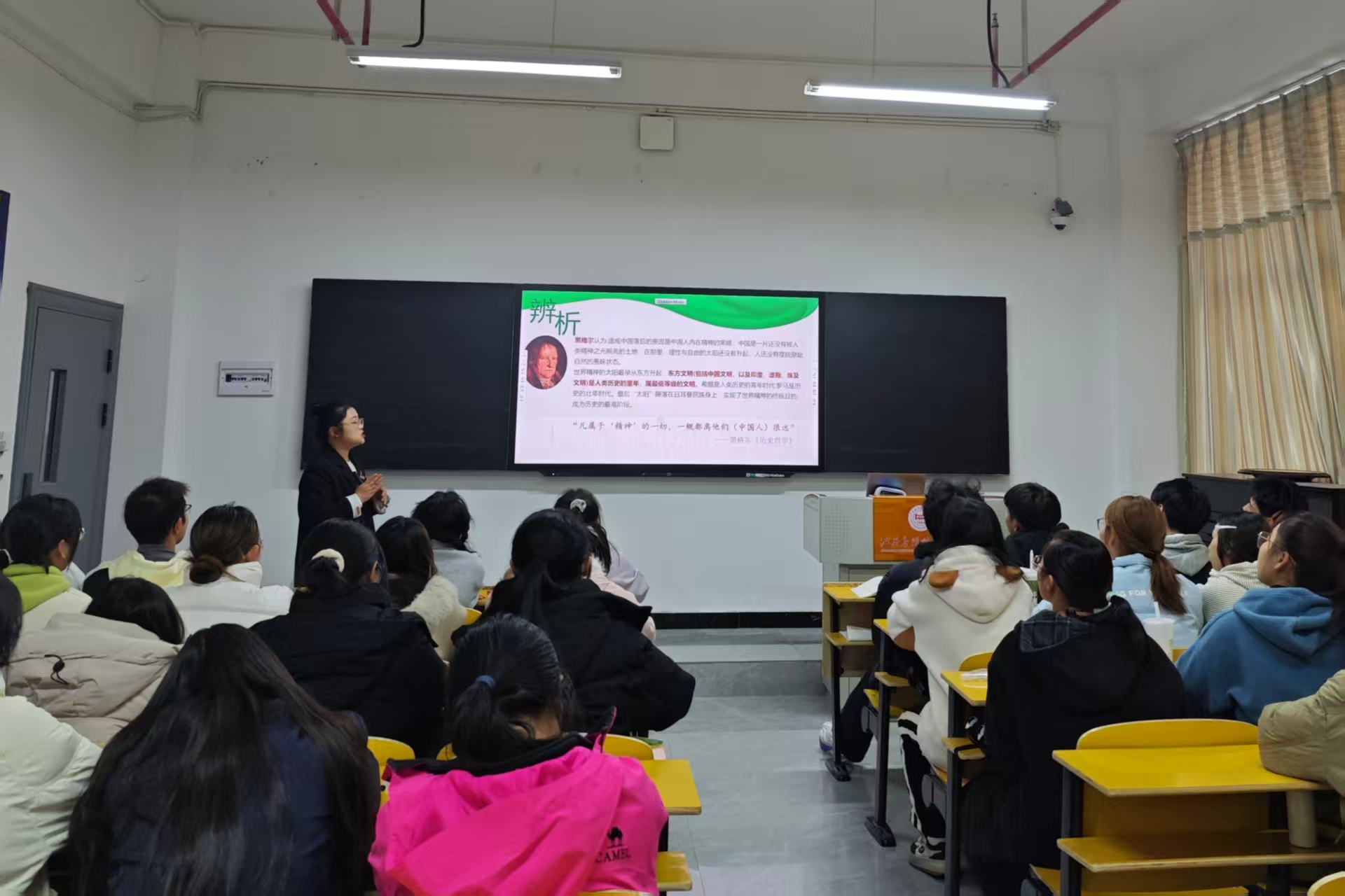 11月20日下午14:10,张璇老师带来《继承优良传统 弘扬中国精神》公开课,课程深入挖掘中华优秀传统文化的精神基因,有机贯通革命文化与社会主义先进文化,通过鲜活案例生动诠释以爱国主义为核心的民族精神和以改革创新为核心的时代精神,激励学生赓续红色血脉、厚植家国情怀,在新时代伟大实践中挺膺担当。