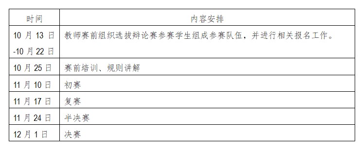 1.初赛,由9支队伍抽签进行辩论,胜出的6支队伍进入复赛。