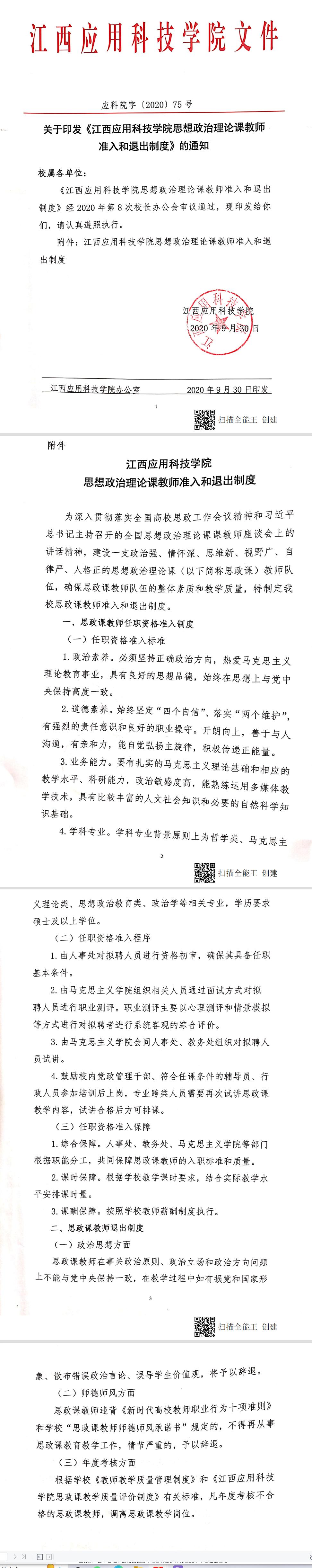 关于印发《江西应用科技学院思想政治理论课教师准入和退出制度》的通知 应科院字﹝2020﹞75号.pdf