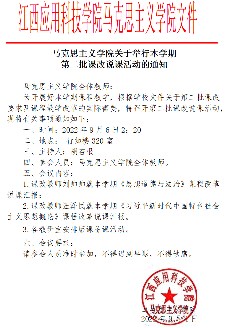 马克思主义学院关于举行本学期第二批课改说课活动的通知
