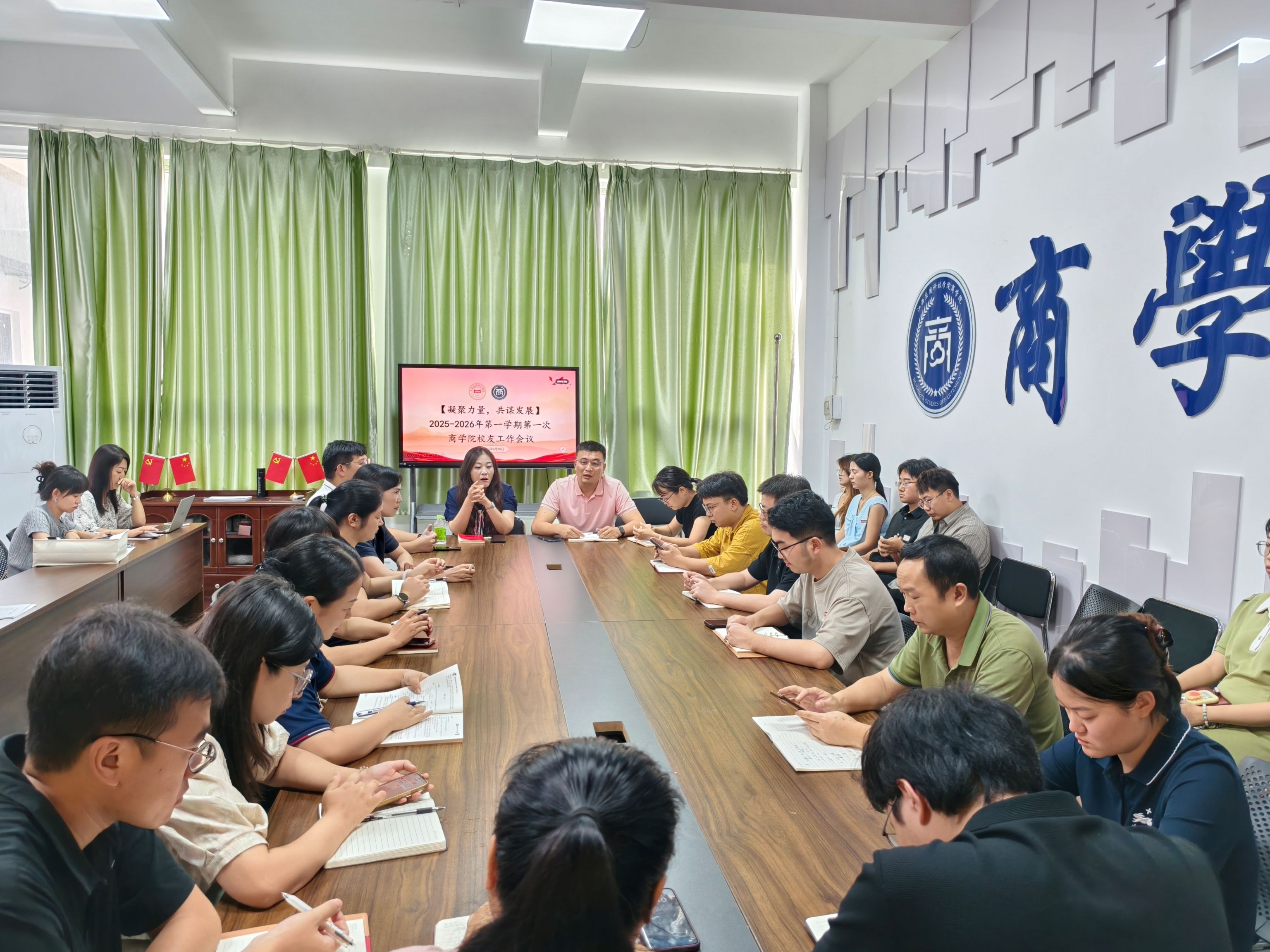 9月19日10:00,商学院在三达楼207教室召开2025年第三次校友工作会议,专项部署毕业生升学信息收集。党总支书记徐青主持,院长王慧,副院长李居英,副院长付芳及全体行政、辅导员参会。