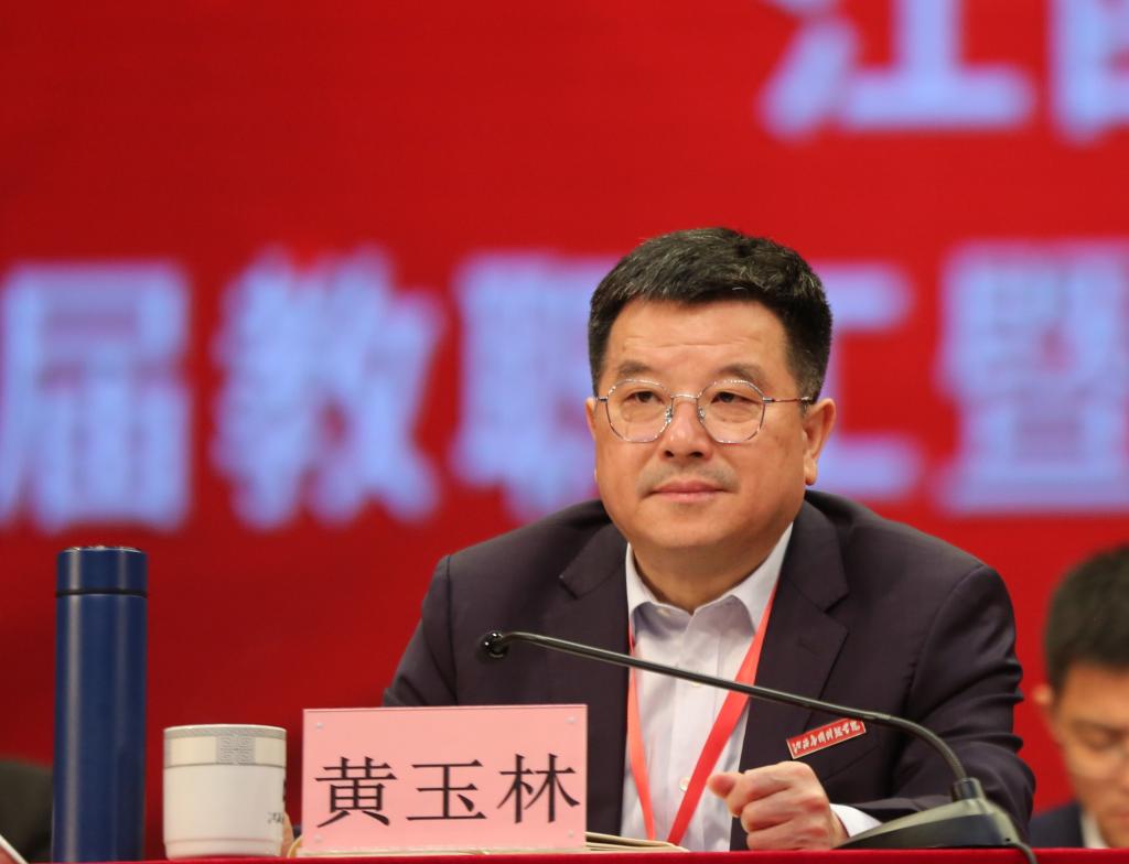 董事长黄玉林在会上发表讲话,他指出,今年是学校转型发展、振兴崛起的关键时期,是我校顺利通过本科教学合格评估工作的决胜决战之年。当前我校正在大力推进五大质量建设工程,全体教职员工要深刻把握大会本质、将大会形成的精神落实到学校的各项工作中。同时,他就如何发挥好“双代会”作用并且开展下一步工作提出三点希望:一是要进一步统一思想,以等不及的紧迫感,把“双代会”的精神传达好贯彻好。二是要进一步凝聚力量,以坐不得的使命感,把校院两级教代会和工会自身建设铸扎实。三是要进一步攻坚克难,以慢不得的危机感,把事关应科长远发展的大事抓紧抓实抓出成效。其中,要做到把应科长远发展抓紧、抓实、抓出成效则需要做到以下三步:首先,要坚持“以评促建提内涵,以评促改抓落实”。其次,要坚持“五大质量建设工程”齐头并进。再者,要坚持营造良好的校园人文生态。他表示,这是一次凝心聚力、加油鼓劲的大会,全校上下要共同努力,为早日把学校建设成特色鲜明的江西一流的应用型大学而努力奋斗。