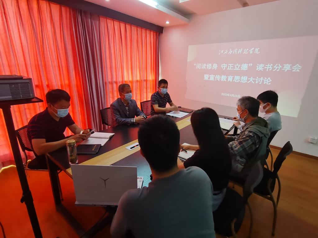 4月23日上午,江西应用科技学院党委宣传部组织开展“阅读修身 守正立德”读书分享会。本次读书分享会特别推荐了《习近平讲故事》《龚全珍坚守爱与信仰的本色》《教师成长与师德修养》《黄大年:心有大我 至诚报国》《教师的修养》等书籍,各位教师结合教师养德修为“好习惯”养成,分享读书心得和“好习惯”践行体验,谈自己的读书感受,谈养德修为的行动,把从书中感悟到的道理转化为干工作、养成好习惯的实际行动。