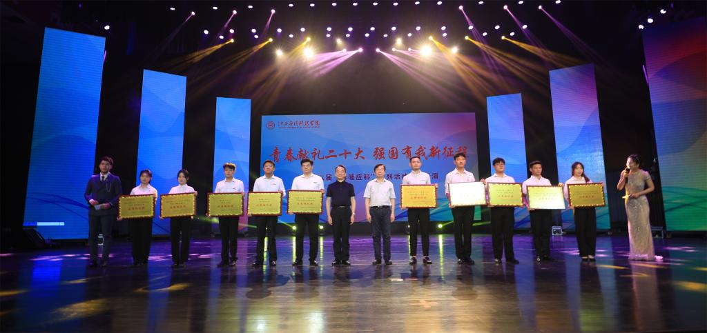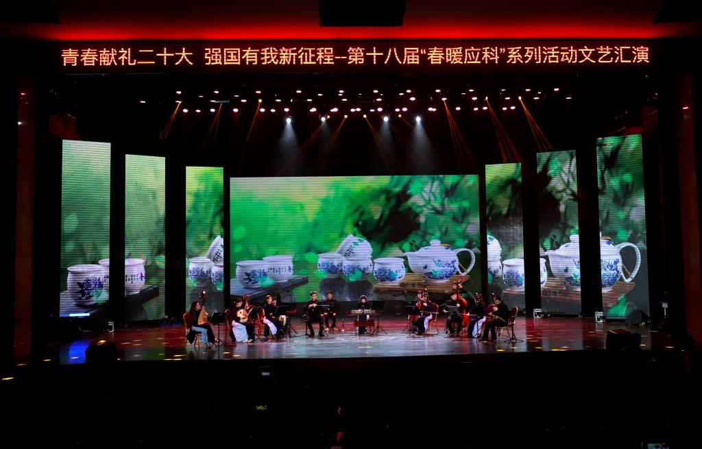 文艺汇演上,校领导为获得第十八届校园文化艺术节系列活动优秀组织奖和第十八届春暖应科系列活动团体总分奖的学院颁奖。整场演出以青春献礼二十大,强国有我新征程为主线,通过歌唱、舞蹈、朗诵等形式向党的二十大献礼,凝聚起强大的青春力量,将浓厚的爱国主义情怀演绎得淋漓尽致。