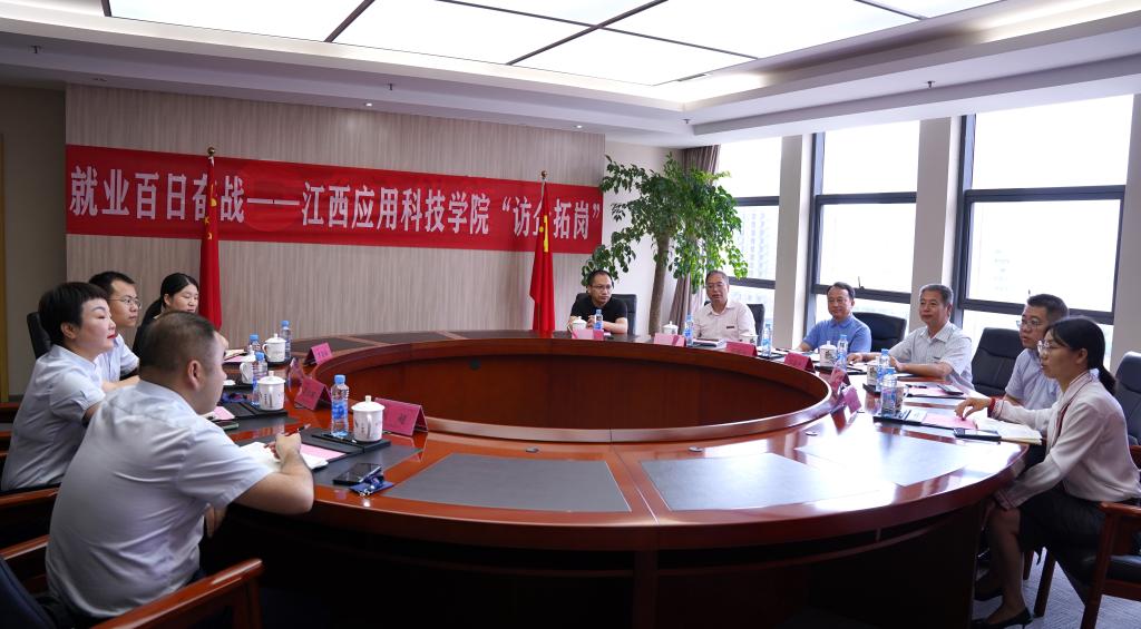 为认真贯彻落实党中央、国务院关于高校毕业生就业工作的决策部署,深入推进“访企拓岗促就业”专项行动,6月24日,江西应用科技学院党委书记彭迪云,党委副书记邓海平,副校长李建萍一行到九江银行南昌分行走访,就进一步加强校企合作,促进毕业生就业工作落实展开座谈。就业指导中心主任李军,财经学院院长揭志峰、党总支书记何难绝陪同调研。