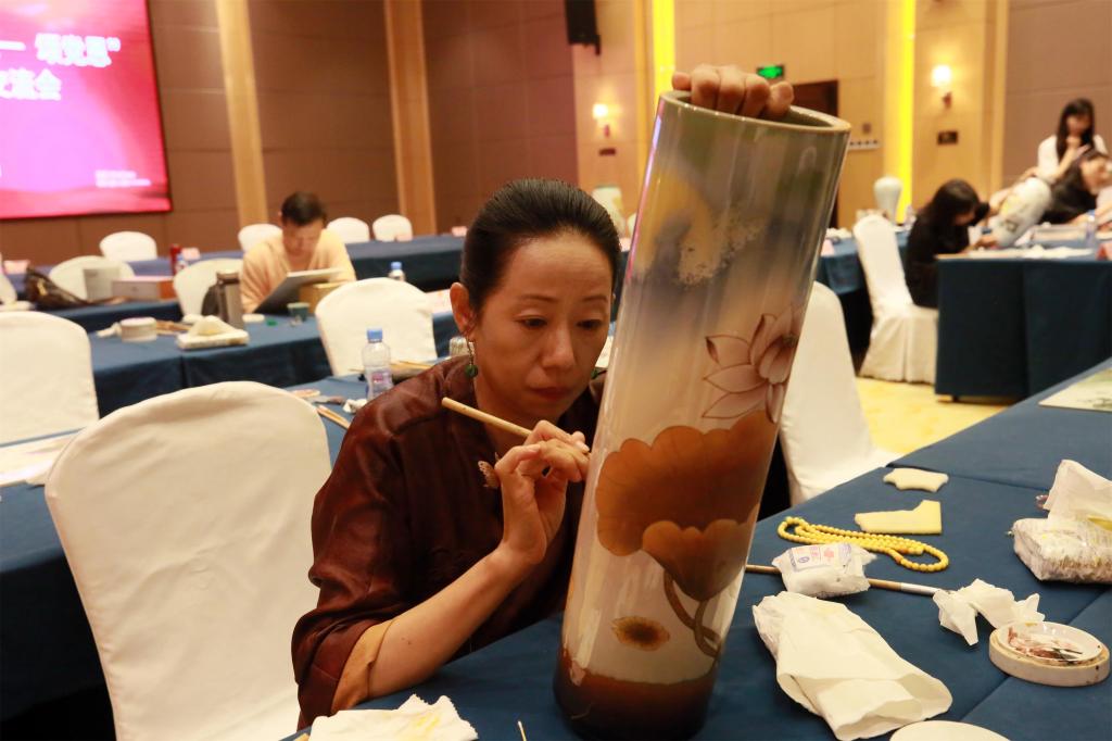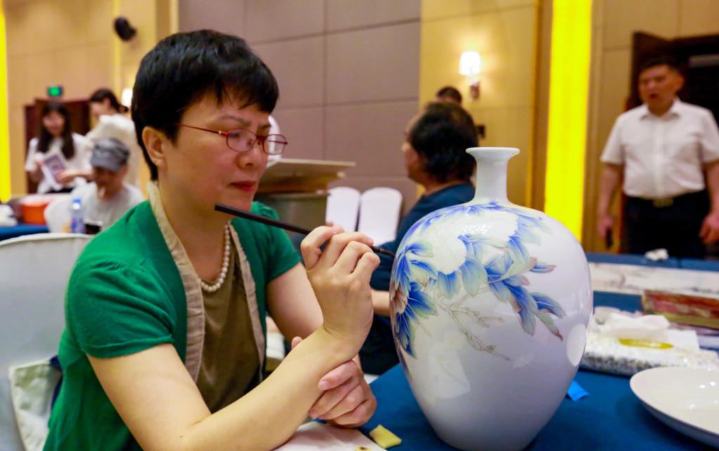 活动现场,陶瓷艺术家们,以瓷为媒、以笔传情,满怀激情、挥毫泼墨,幻化成国风西画交相辉映、时空胜景纵横交错、江山如画花香馥郁、笔墨油彩五彩斑斓的瓷艺世界,闪烁着国画、油画、雕塑、建筑等不同艺术门类与陶瓷工艺美术融合的熠熠光辉。