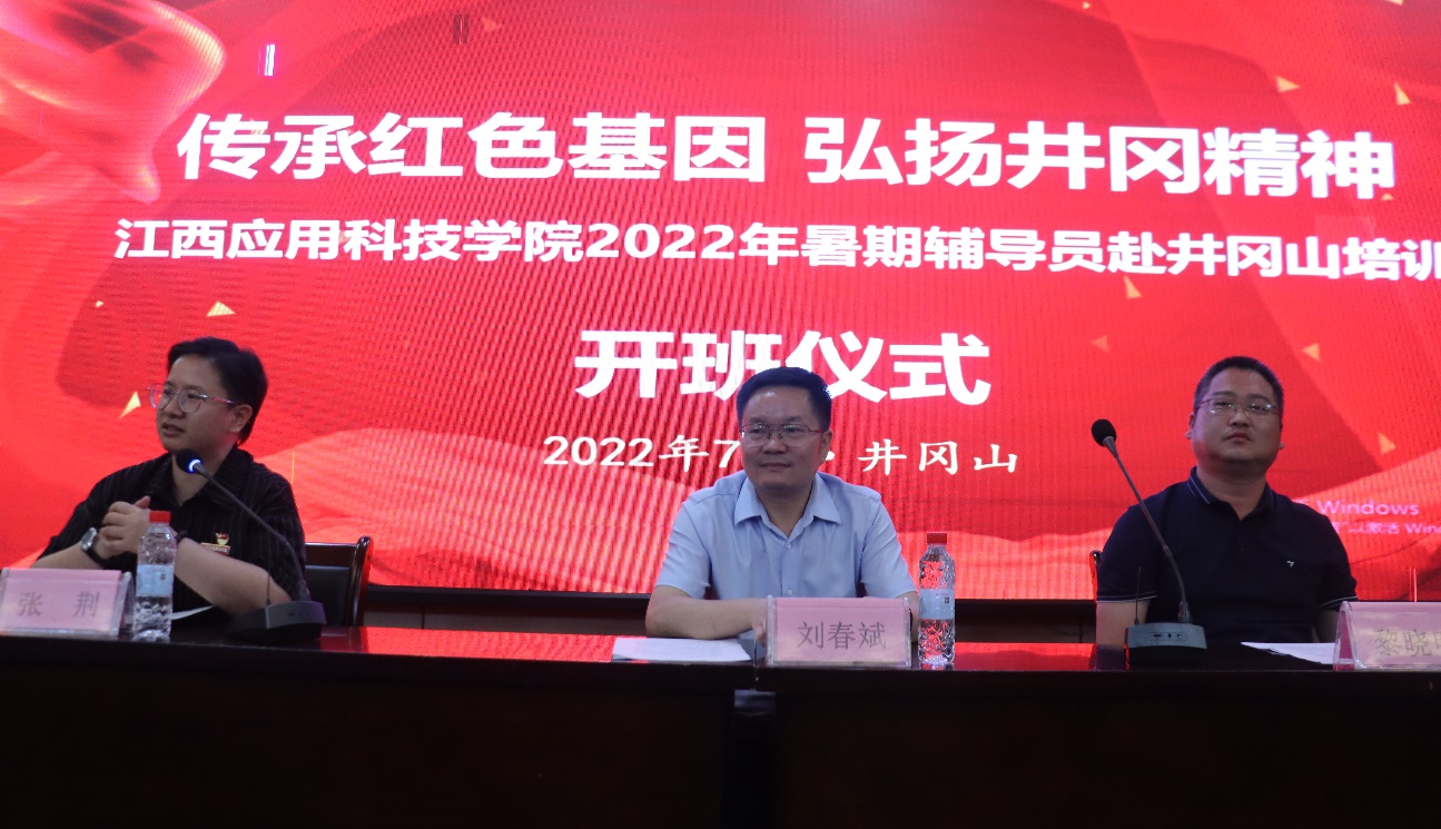 7月16日上午“传承红色基因弘扬井冈精神”—江西应用科技学院2022年暑期辅导员赴井冈山培训班开班仪式在雄壮的国歌声中顺利举行。学校副校长刘春斌,校长助理、学工处处长黎晓明,团委书记张荆出席仪式。全体辅导员参加会议。会议由张荆主持。