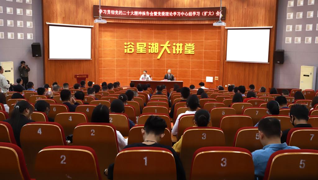 党的二十大刚刚胜利闭幕,10月24日上午,江西应用科技学院召开党委理论学习中心组(扩大)会议,第一时间传达学习二十大精神。原江西省政协常委、江西省社会科学院原院长、二级研究员、辰林教育集团首席战略官汪玉奇应邀作题为《伟大的政治宣言,科学的行动纲领》的专题辅导报告,全体校领导、副处以上干部、思政课教师和学生代表参加学习。学校党委书记彭迪云主持报告会并作总结讲话。
