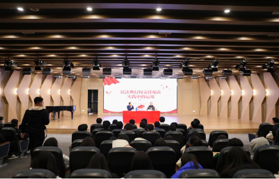 万里鹏和陈洪波两位教授以“民法典侵权责任编在实践中的运用”为题,从现实生活中的真实案例切入,通过结合机动车交通事故的定性、机动车的赔偿责任、高空抛物等案例,以小见大,深入浅出的剖析了民法典在实际案例中的运用,让同学们对法律知识有了进一步理解,加强了法律意识。