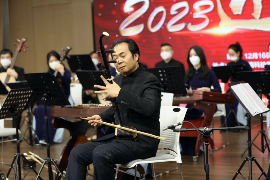 音乐会在一首民乐合奏曲《喜洋洋》拉开了帷幕。二胡齐奏《扬州小调》仿佛带我们走进了充满茉莉和芦柴花的扬州,芳香四溢;二胡独奏《吴哥》为我们展现了一幅“吴苑四时风景好,就中偏好是春天的欣欣向荣之景。一曲《欢乐歌》,其节奏自由、旋律甜美、优扬宽广、热情奔放,令人回味无穷。华丽清新、流畅活泼的《三六》,带着喜庆,洋溢着我们对2023的憧憬跟希望,也令我们感受到“大弦嘈嘈如急雨,小弦切切如私语”跟“间关莺语花底滑,幽咽泉流冰下难”的艺术情趣;深情悠扬的《茶山行》慢板,令我们在热烈的气氛中仿佛看到一位采茶姑娘在劳作,她一路欢歌,心情是多么愉悦;充满浓郁山东地域风味旋律的柳琴独奏《春到沂河》,描绘了一幅沂河流水潺潺、两岸春光明媚的美景,展示了人们在田间愉快劳动、展望丰收的情景跟幸福美好生活。马蹄击节,车轮吟唱,生动朴实的《扬鞭催马运粮忙》为我们展现了一幅硕果累累的丰收之景,也寓意着今年我们付出的努力收获了累累硕果。最终,音乐会在具有磅礴气势、热烈气息、奔放旋律的《赛马》中圆满落幕。