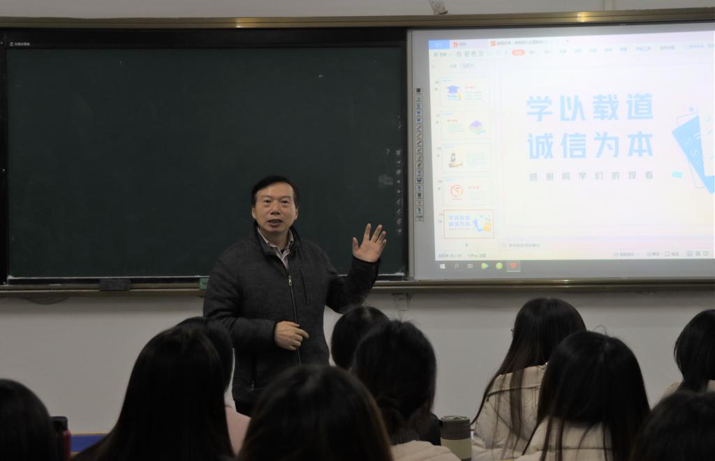 黄士安在讲课中,号召同学们讲诚信,做一位诚实有信的大学生。他指出,学校开展的养成教育对我们学生的成长十分重要,要认真对待且做下去。并希望同学们坚持诚信考试,这种诚信不仅仅是对考试的本身,更是对未来人生路有很重要的帮助,诚信是人生走向成功的重要一点,希望同学们都能做到讲诚信,做一名合格的大学生。