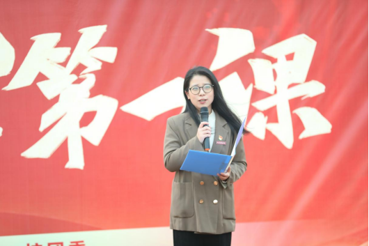 教师代表音乐学院陈宗瑞发言,她深情地回顾了自入校以来温暖点滴和发展历程,她表示,作为新手教师,我会怀着最大的热情投入到教育教学工作当中,勇于面对挫折和困难,多总结、多反思、多归纳、多学习、多请教,提升自己的业务能力水平,帮助同学们成为更好的自己。作为青年党员教师,我也一定会用实际行动去实践党旗下的宣誓,去践行青春使命,用爱心浇灌教育,以青春坚守初心。
